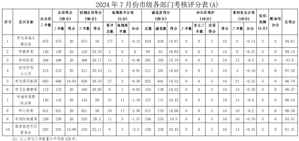 2024年7月份,寶雞市12345政務服務便民熱線(“有問必應、接訴即辦”平臺)受理企業(yè)和群眾訴求43825件,應辦結44021件,辦結43824件,總體辦結率99.55%。其中12345熱線渠道受理訴求43206件(包括來電41076件、省12345交辦1010件、微信公眾號留言955件、政府網站留言165件),應辦結43431件,辦結43237件,辦結率99.55%;市長信箱收到來信共515件,應辦結486件,辦結484件,辦結率99.59%;人民網領導留言板留言91件,應辦結92件,辦結91件;西部網留言13件,應辦結12件,辦結12件。