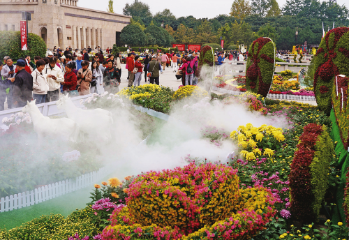 十月金秋,菊花競艷。本屆菊展以“菊綻幸福路·共筑中國夢”為主題,經(jīng)科學(xué)統(tǒng)籌、精心籌備,布置了“琴、舞、書、畫、詩、酒、茶、印”等主題造型,共有500余種、20萬余盆花卉,展出從即日起至11月21日。