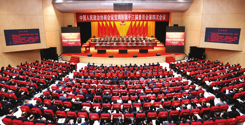上午9時,大會在雄壯的中華人民共和國國歌聲中開幕。在審議通過政協(xié)寶雞市第十三屆委員會第四次會議議程后,劉其智代表政協(xié)寶雞市第十三屆委員會常務(wù)委員會作工作報告。