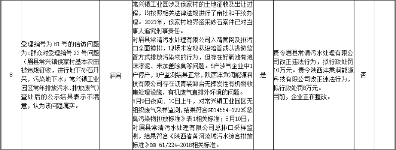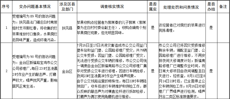 截止2024年8月17日12時,省第一生態(tài)環(huán)境保護(hù)督察組交辦涉及寶雞市生態(tài)環(huán)境信訪件126件,現(xiàn)將第十九批及72、78、81號交辦問題辦理結(jié)果通報如下: